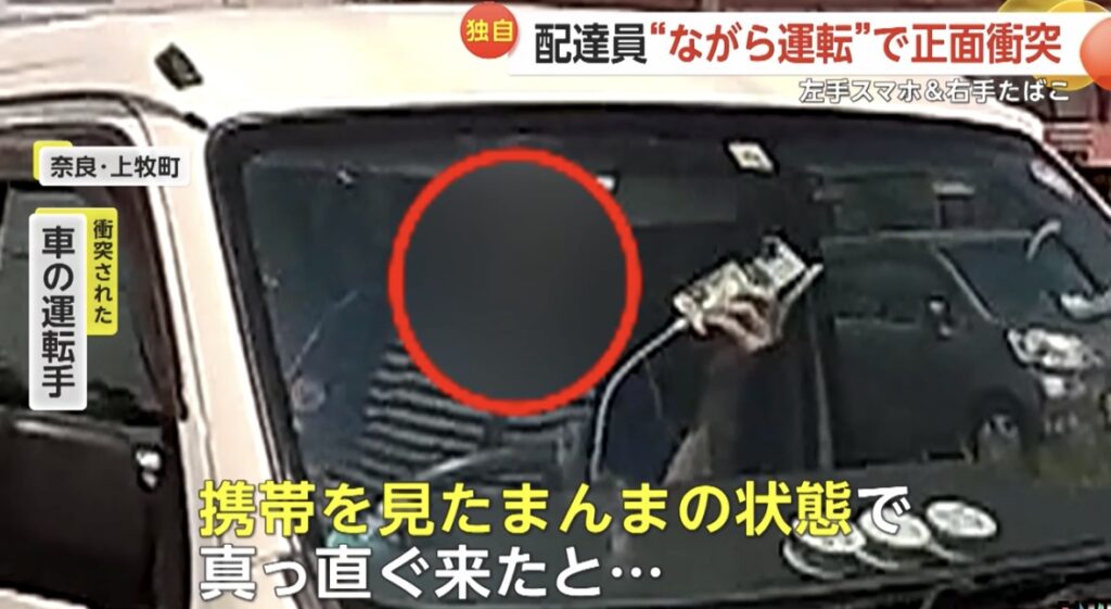佐川急便系の配達員さん、右手にタバコ、左手にスマホ、シートベルト無しで運転して事故る