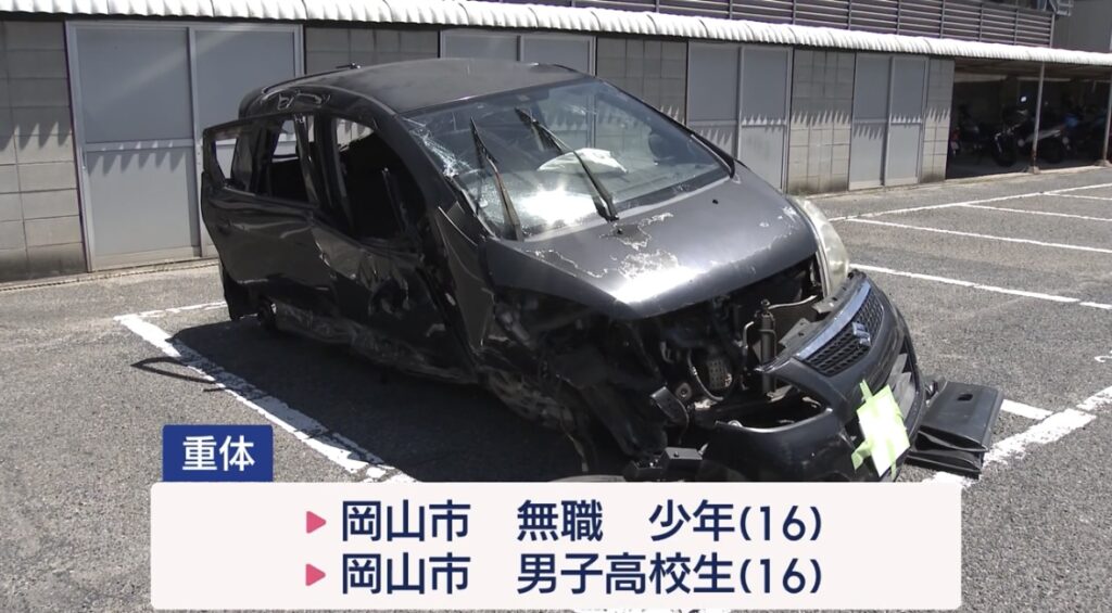 【岡山】16歳の少年が運転する軽自動車が自損事故 少年2人が重体 無免許で運転