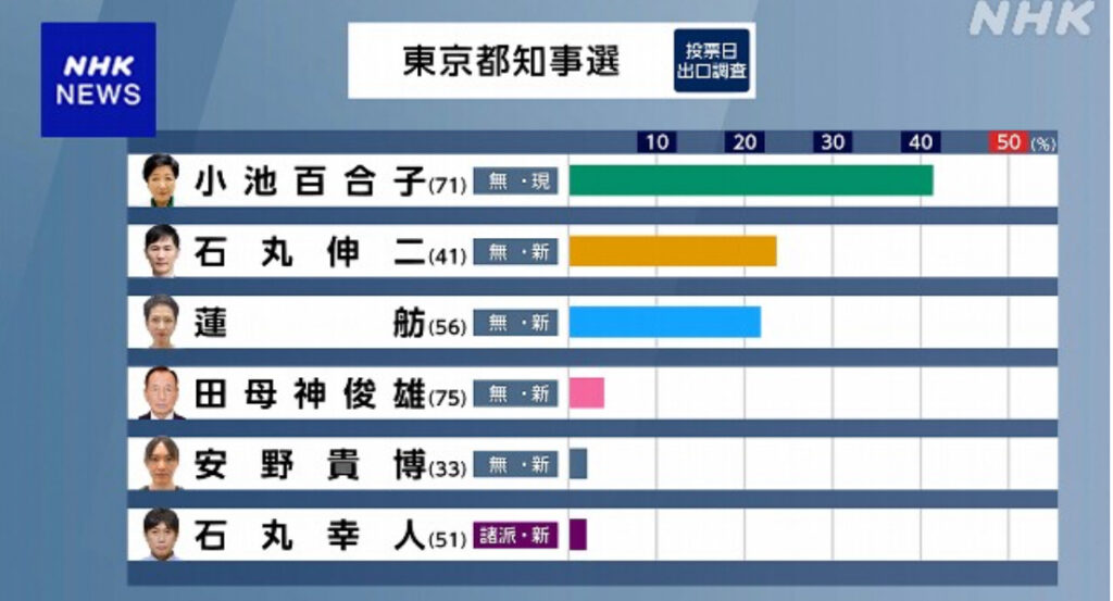 【東京都知事選】小池百合子氏 当選確実(NHK速報)