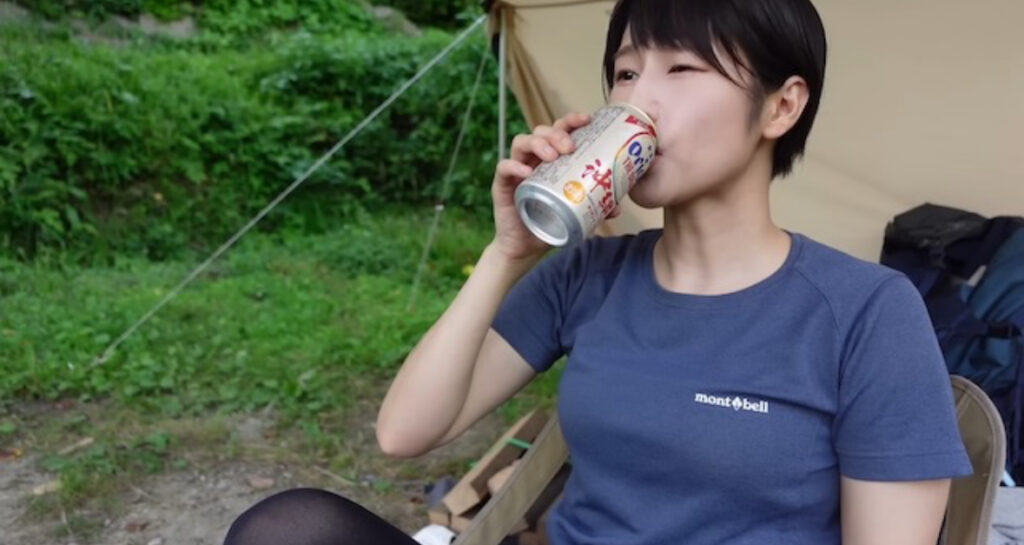 キャンプ女子YouTuber、大自然で“ぼっち飲み” ギャップのある飲みっぷりに反響