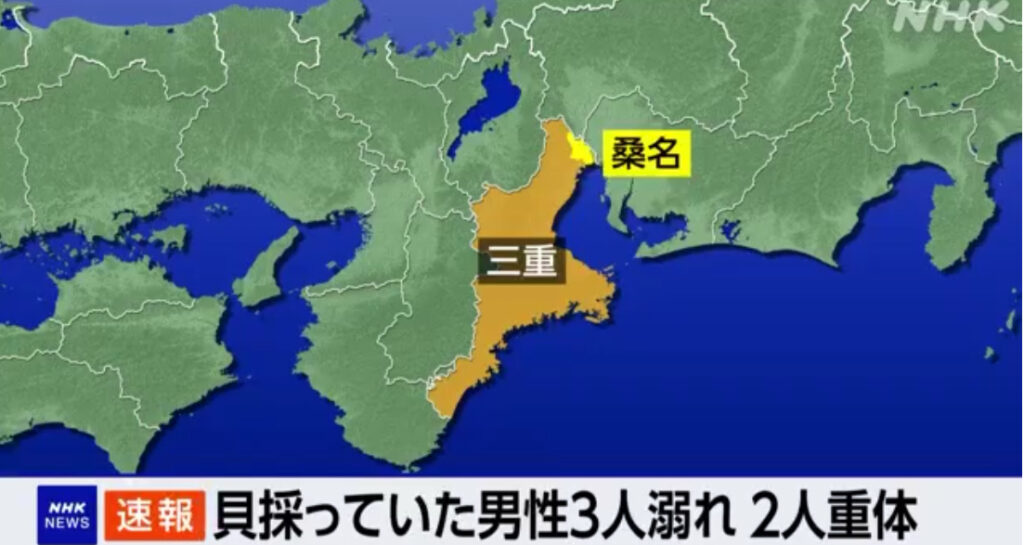 【三重】桑名 貝を採っていた男性3人溺れ うち2人意識不明の重体