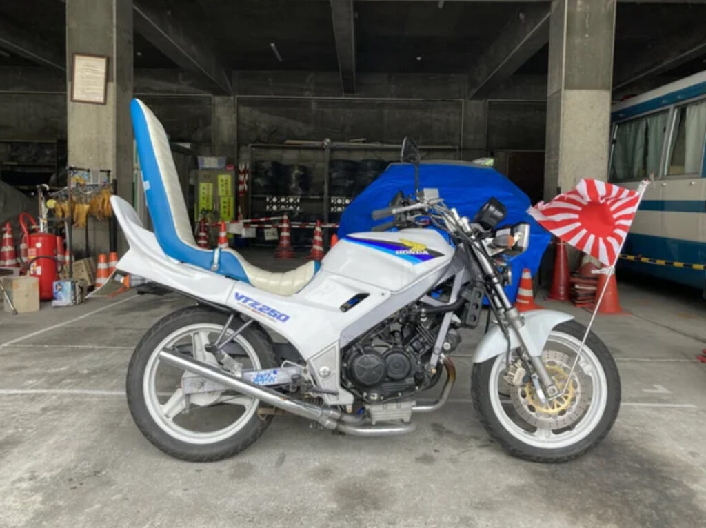 【広島】三段シートに旭日旗 暴走族風のバイクが交差点で乗用車と衝突 バイクを運転の17歳少年逮捕