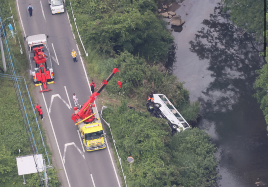 【茨城県笠間市】マイクロバスが転落 運転手と高校生12人が軽傷