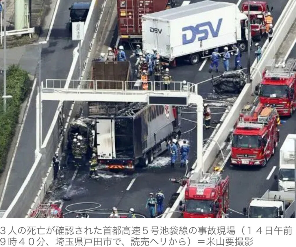 【事故】首都高で車7台絡む事故、3人死亡…渋滞最後尾に追突したトラック運転手を過失運転致傷容疑で逮捕