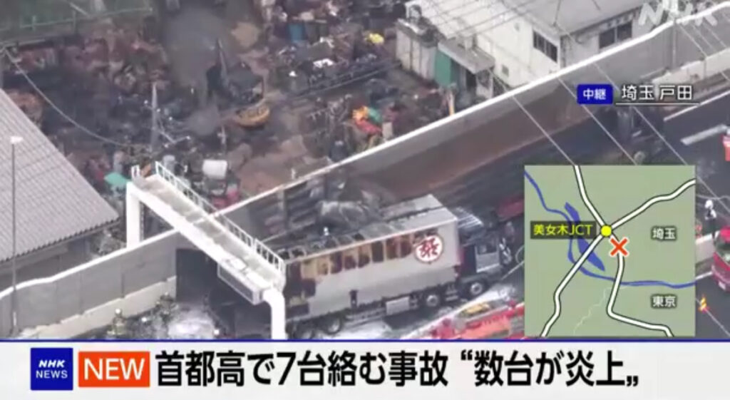 1: ぐれ ★ 2024/05/14(火) 10:49:57.52 ID:qvsmBKPz9 >>5/14 10:41 NHK 14日7時半すぎ、埼玉県戸田市の首都高速道路で、トラックと乗用車合わせて7台が絡む事故があり、複数の車が炎上しました。この事故でこれまでに3人の死亡が確認され、警視庁が... -