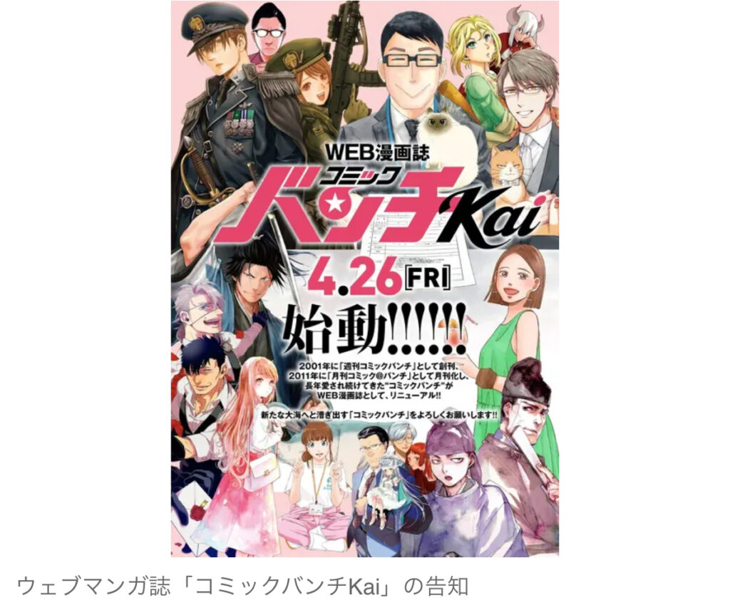 1: 愛の戦士 ★ 2024/03/21(木) 14:31:22.77 ID:ppjnqu5v9 MANTANWEB 3/21(木) 11:26ウェブマンガ誌「コミックバンチKai」の告知 新潮社のマンガ誌「月刊コミックバンチ」が3月21日発売の5月号をもって、刊行を終了することが分かった。紙での刊行を終了し... -