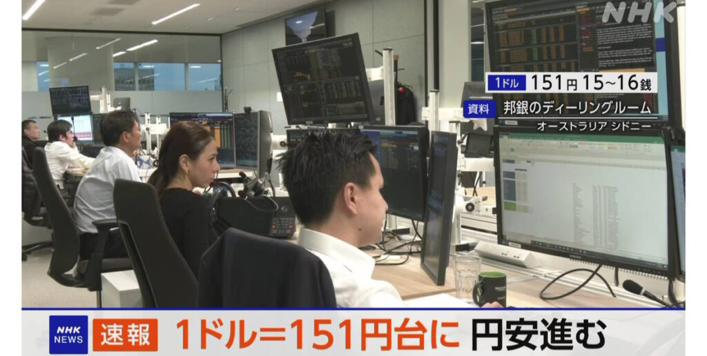 【¥】1ドル=151円台まで値下がり 去年11月以来 シドニー市場