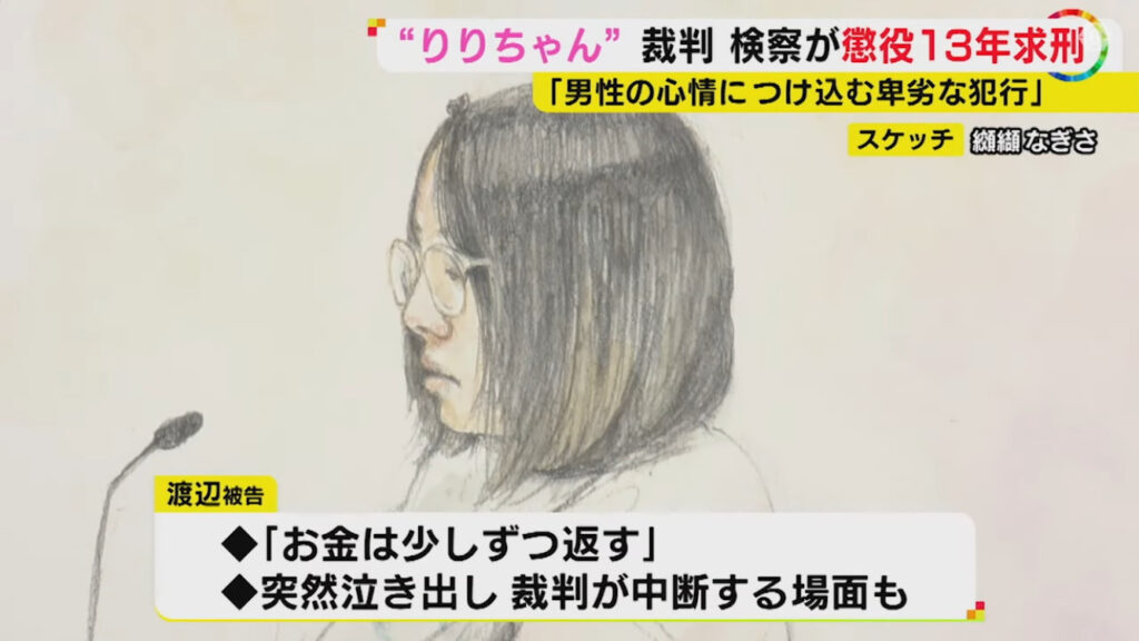 頂き女子りりちゃん(25)「おぢにはLINEしたり会ってご飯食べたりして償いたい」→懲役13年求刑→号泣