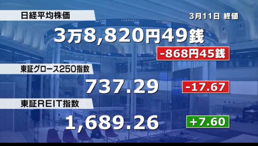 1: シャチ ★ 2024/03/11(月) 16:23:16.27 ID:zDZH0waP9 3/11(月) 16:01配信 テレビ愛知 https://news.yahoo.co.jp/articles/a3ce42b4c2ca5d17cd56ede3ac6df158ab9afc89 11日の日経平均株価は急落。 外国為替相場の円高ドル安の進行などを背景に大幅な値下... -