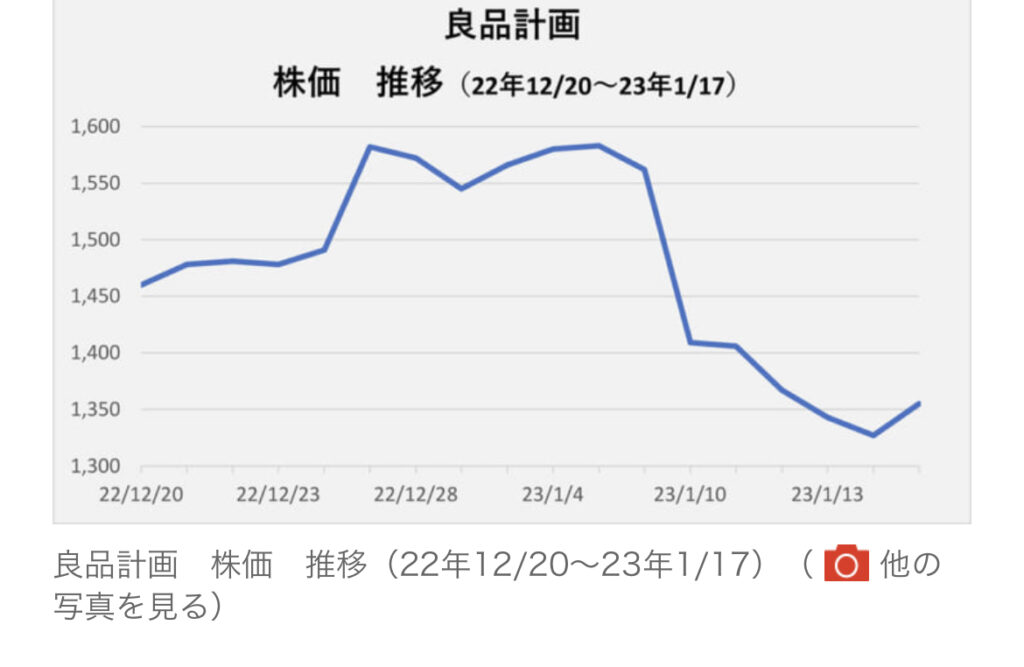 1: 煮卵オンザライス ★ 2023/01/19(木) 14:21:07.15 ID:L//HsfbX9 デイリー新潮 2023年01月19日 https://www.dailyshincho.jp/article/2023/01190559/?all=1 無印良品を展開する良品計画(東京都) の株価は、年始から15%以上の下落を見せた。昨夏からは... -