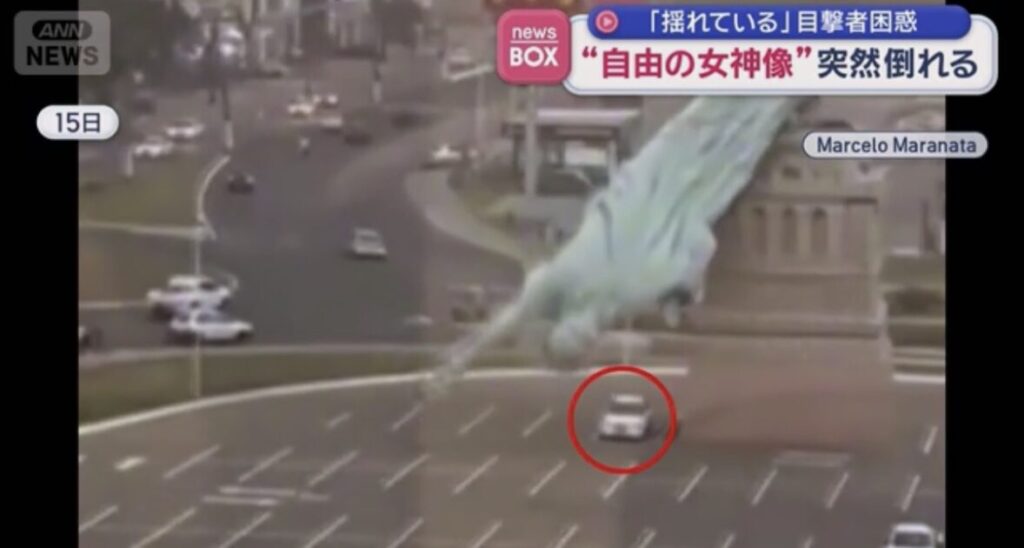 “自由の女神像”突然倒れる 「揺れている」目撃者困惑