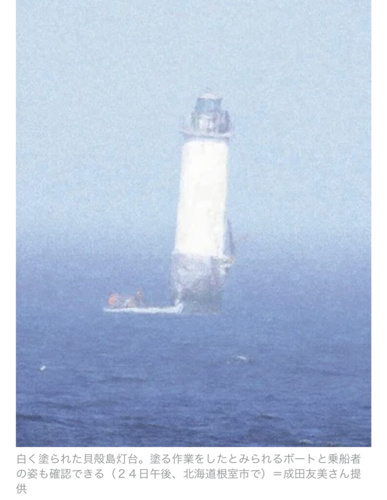 1: ぐれ ★ 2023/08/26(土) 20:24:20.81 ID:G6uviIqb9 >>2023/08/25 06:44 読売新聞 北方領土・歯舞群島の貝殻島灯台が24日、白く塗られたことが分かった。2日には灯台の上にロシア国旗が立てられたことを根室海上保安部が確認していた。近年、こ... -