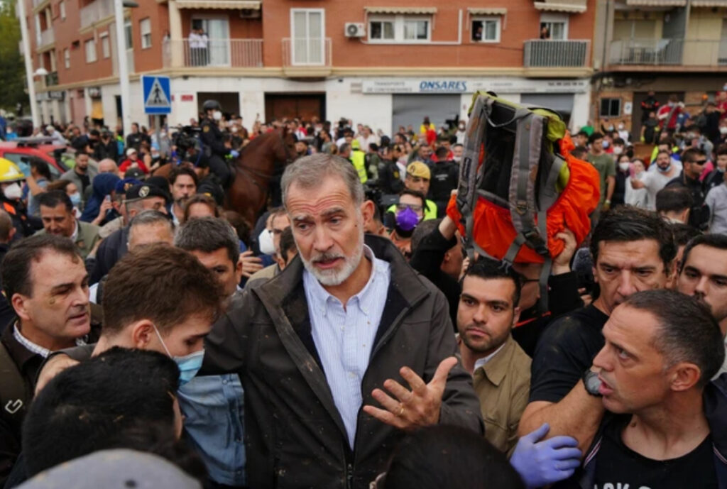 スペイン国王が洪水の被災地訪問、住民は抗議 国王一行に泥投げる