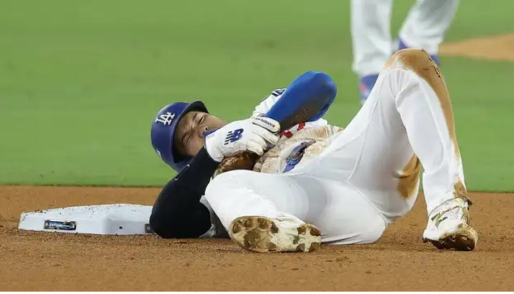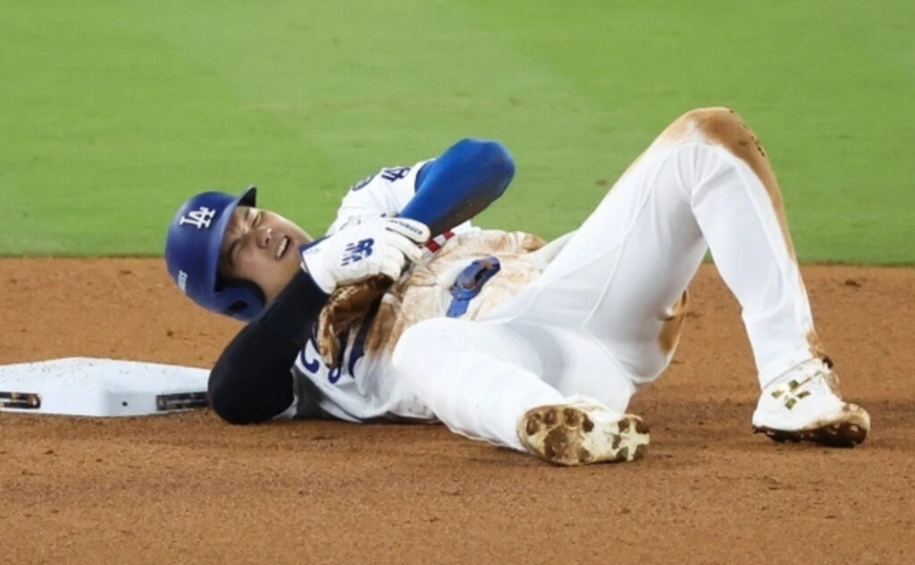 1: フォーエバー ★ 2024/10/27(日) 20:34:23.54 ID:eWQZa6dw9 10/27(日) 19:31配信 日刊スポーツ ドジャース対ヤンキース 7回裏、盗塁を試みた際に負傷した左腕付近を抑えるドジャース大谷翔平 (AP) <ワールドシリーズ:ドジャース4-2ヤンキース>◇第2... -