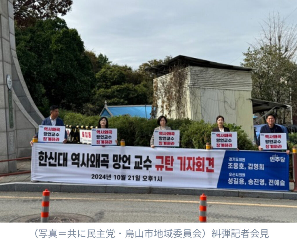 1: 昆虫図鑑 ★ 2024/10/24(木) 08:23:14.56 ID:xat0E5yM 慰安婦被害者について「父親や叔父に売られた」「強制的に連行されたのではなく金を稼いで帰ってきた」と述べた韓国の大学教授に対して、地域の道・市議員が怒りの声を上げた。「共に民主党」烏山(... -