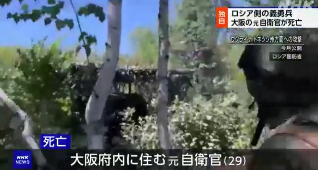 1: 香味焙煎 ★ 2024/07/22(月) 18:31:10.62 ID:MR77REfB9 ロシアによるウクライナへの軍事侵攻で、大阪府内に住む20代の元自衛官がロシア側の義勇兵として戦闘に参加し、6月、ウクライナ東部ドネツク州で死亡していたことが関係者への取材で分かりました。...