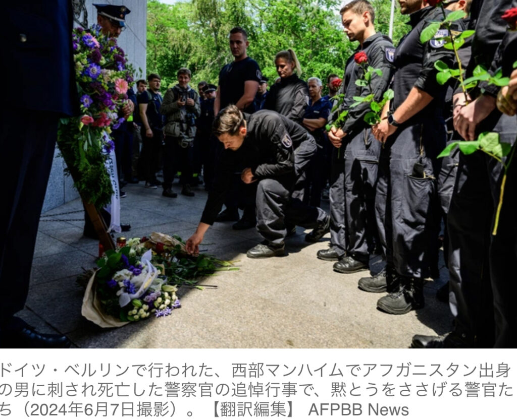 1: PARADISE ★ 2024/06/27(木) 17:41:21.78 ID:sXZ9G2yn9 【AFP=時事】ドイツ政府は26日、テロ行為を賛美する外国人の強制退去をしやすくする法案の国会提出について閣議決定した。 【写真】アフガニスタン出身の男に刺殺されたドイツ人警官の追悼行事 ... -