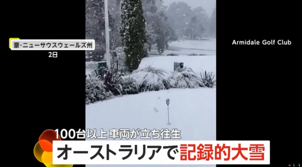 1: BFU ★ 2025/08/05(火) 19:43:55.52 ID:Fg3PBujx9 辺り一面が雪景色となったゴルフ場。 日本とは季節が逆のオーストラリアの映像です。 冬とはいえ雪が降ることが珍しいオーストラリア東部のニューサウスウェールズ州やクイーンズランド州で記録的な大雪... -