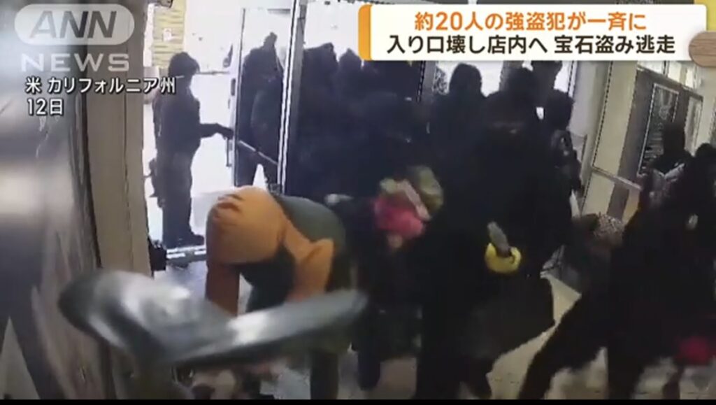 覆面をした20人が一斉に宝石店に押し入り強盗 カリフォルニア