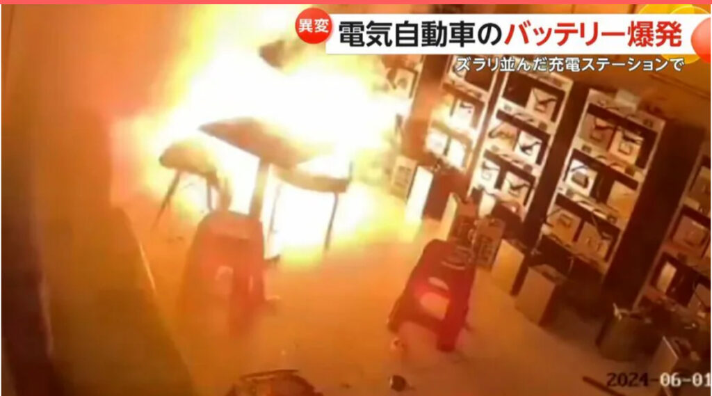 1: 【1等桁違い】 (庭) [US] 2024/06/16(日) 19:28:17.52 ID:TILmAtPs0● BE:323057825-PLT(13000) sssp://img.5ch.net/ico/999991500948658.gif 中国・広東省の充電ステーションで、電気自動車のバッテリーが突然爆発し、炎が火炎放射器のように噴き出す... -
