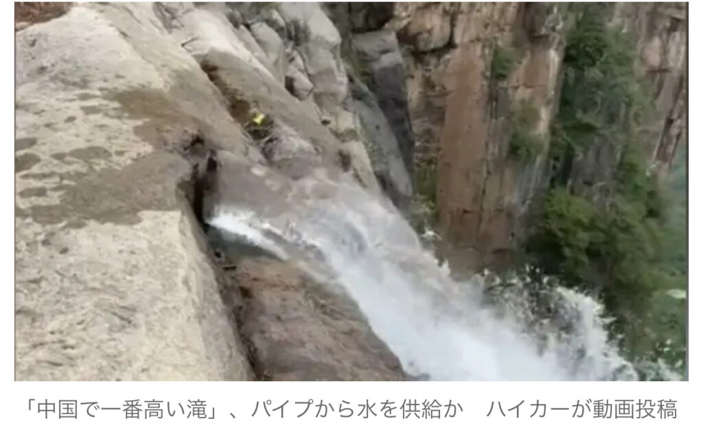 「中国で一番高い滝」、パイプから水を供給か ハイカーが動画投稿
