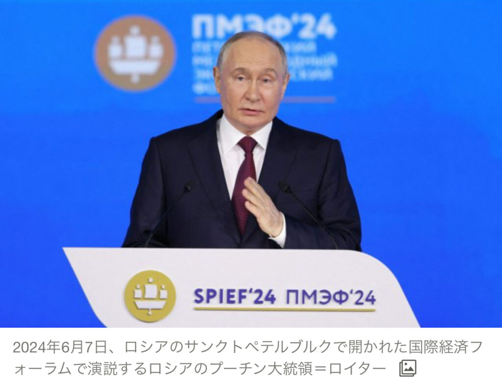 1: 少考さん ★ 2024/06/07(金) 23:26:53.14 ID:AKdOgkXm9 プーチン氏「ロシア経済は日本超え」 肝いりの経済フォーラムで演説:朝日新聞 https://www.asahi.com/articles/ASS674HT1S67UHBI01BM.html2024年6月7日 23時05分 2024年6月7日、ロシアのサンクト... -