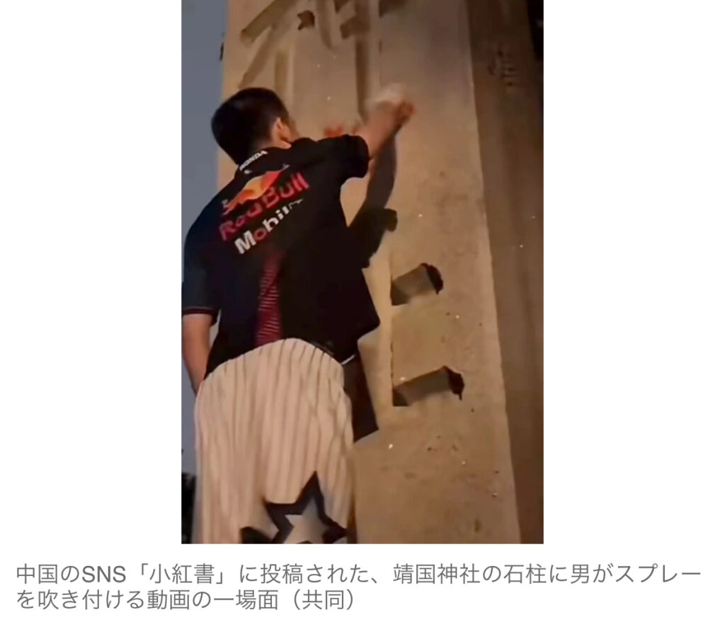 【共同通信】靖国神社に落書きや放尿する仕草動画を投稿 中国のSNSに称賛の声 「とても美しい」「よくやった」と称賛する声
