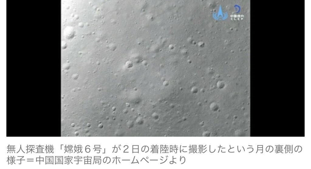 1: 侑 ★ 2024/06/02(日) 23:40:08.13 ID:??? TID:realface 【瀋陽=出水翔太朗】中国国家宇宙局は2日、無人探査機「嫦娥(じょうが)6号」が2日午前6時23分(日本時間同7時23分)、月の裏側への着陸に成功したと発表した。2日間で岩石や土壌を採... -