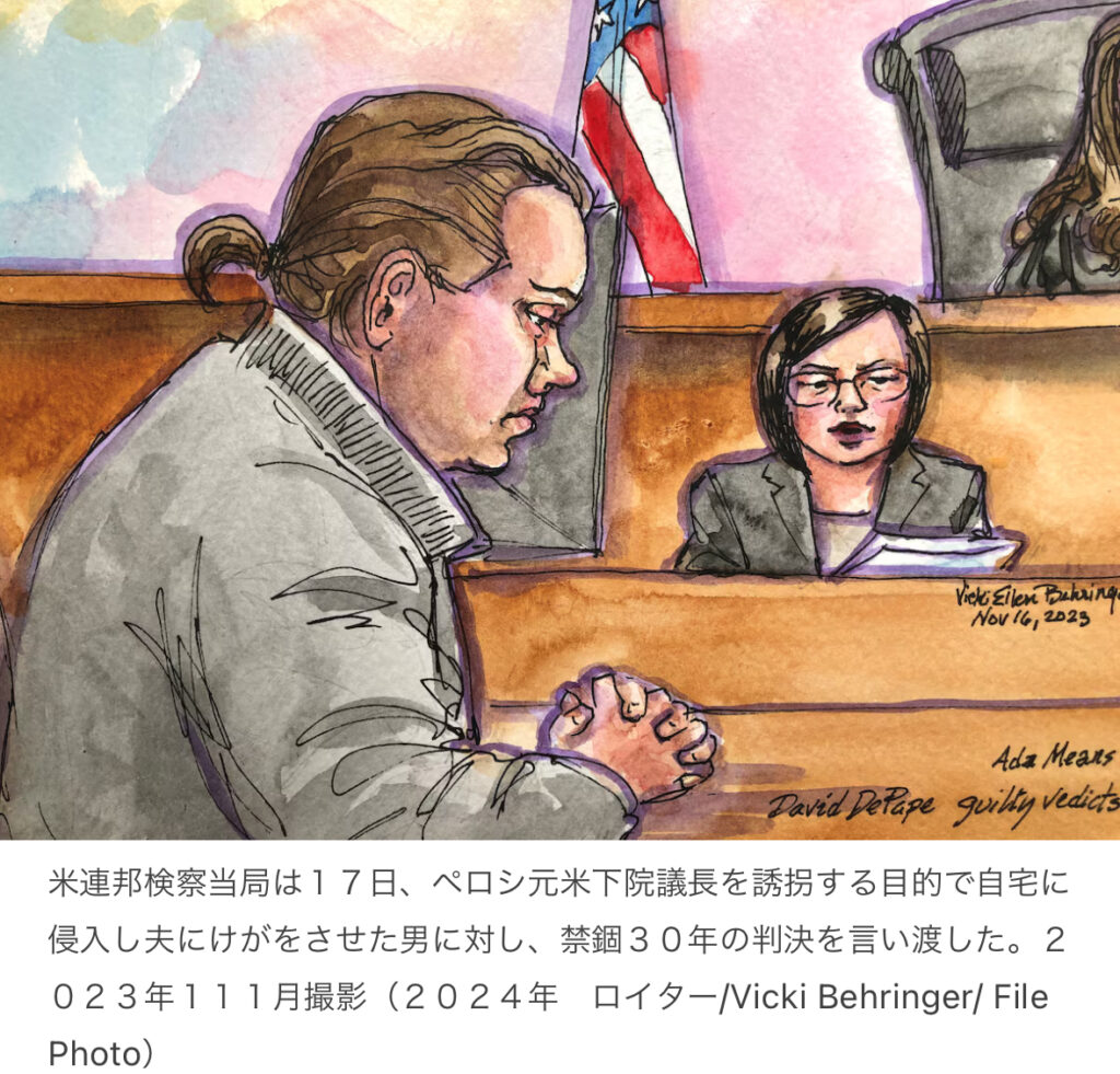 【米国】ペロシ元下院議長の夫襲撃、被告に禁錮30年