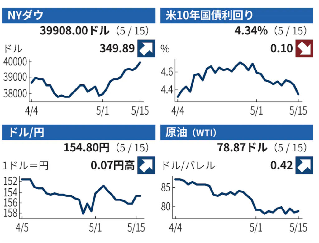 1: !omikuji(大阪府) [MA] 2024/05/16(木) 08:34:33.98 ID:MgiP2ZdJ0 BE:323057825-PLT(12000) sssp://img.5ch.net/ico/999991500948658.gif 米株式市場でダウ工業株30種平均は続伸し、前日比349ドル89セント(0.88%)高の3万9908ドル00セントで終えた。 3... -