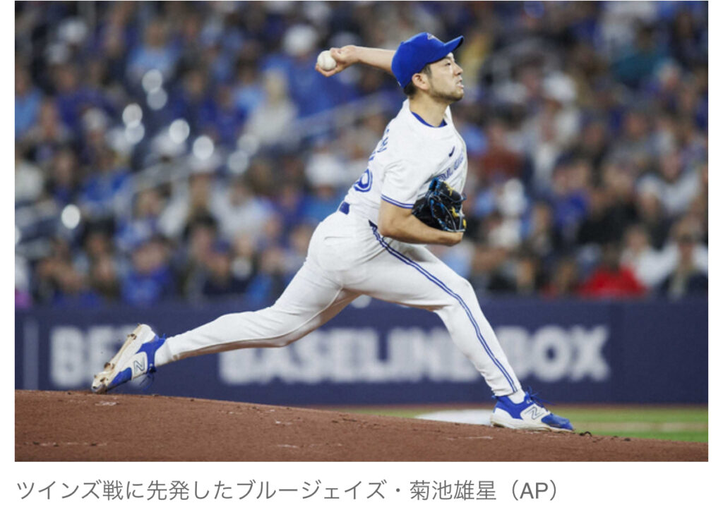 【MLB】ブルージェイズ・菊池雄星 今季最長8回97球を投げ4安打2失点の粘投も援護恵まれず3勝目お預け