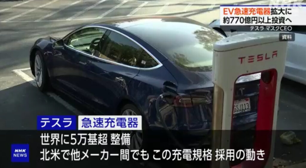【EV】米テスラ マスクCEO “急速充電器網拡大に770億円以上投資へ”