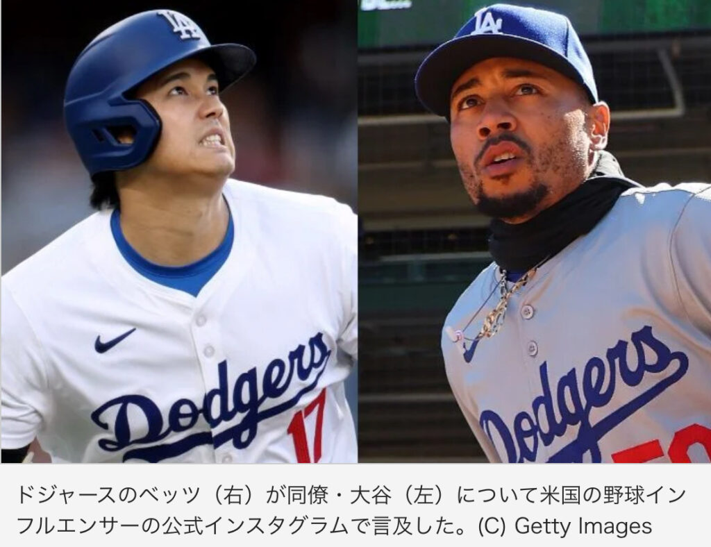 1: おっさん友の会 ★ 2024/05/07(火) 10:31:29.23 ID:hF2f5Dg59 【前略】そんな大谷に対して、ドジャースのスター選手で同僚のムーキー・ベッツが、アメリカで著名な野球インフルエンサー『bat boys baseball』の公式インスタグラムに登場し、大谷について... -