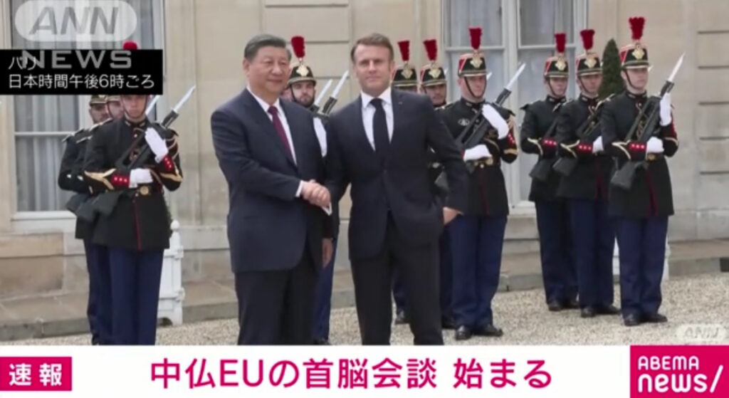 1: Ikhtiandr ★ 2024/05/06(月) 19:50:23.68 ID:n1IpCZjk 中国の習近平国家主席とフランスのマクロン大統領、EU(ヨーロッパ連合)のフォンデアライエン委員長の3者による首脳会談が始まりました。 5日からフランスを訪れている中国の習主席はパリにあ... -