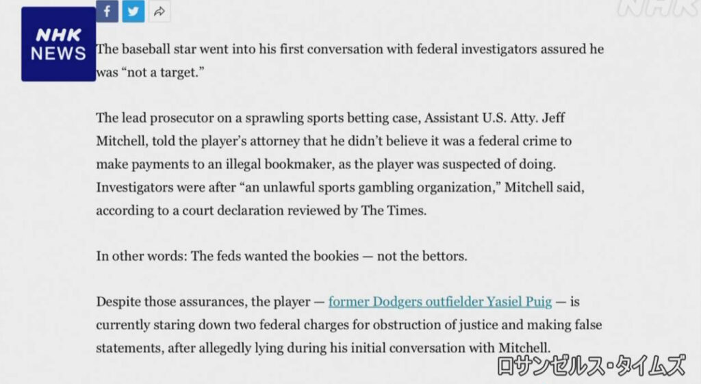 【朗報】FBI 大谷 「巨額送金は犯罪に該当しない」
