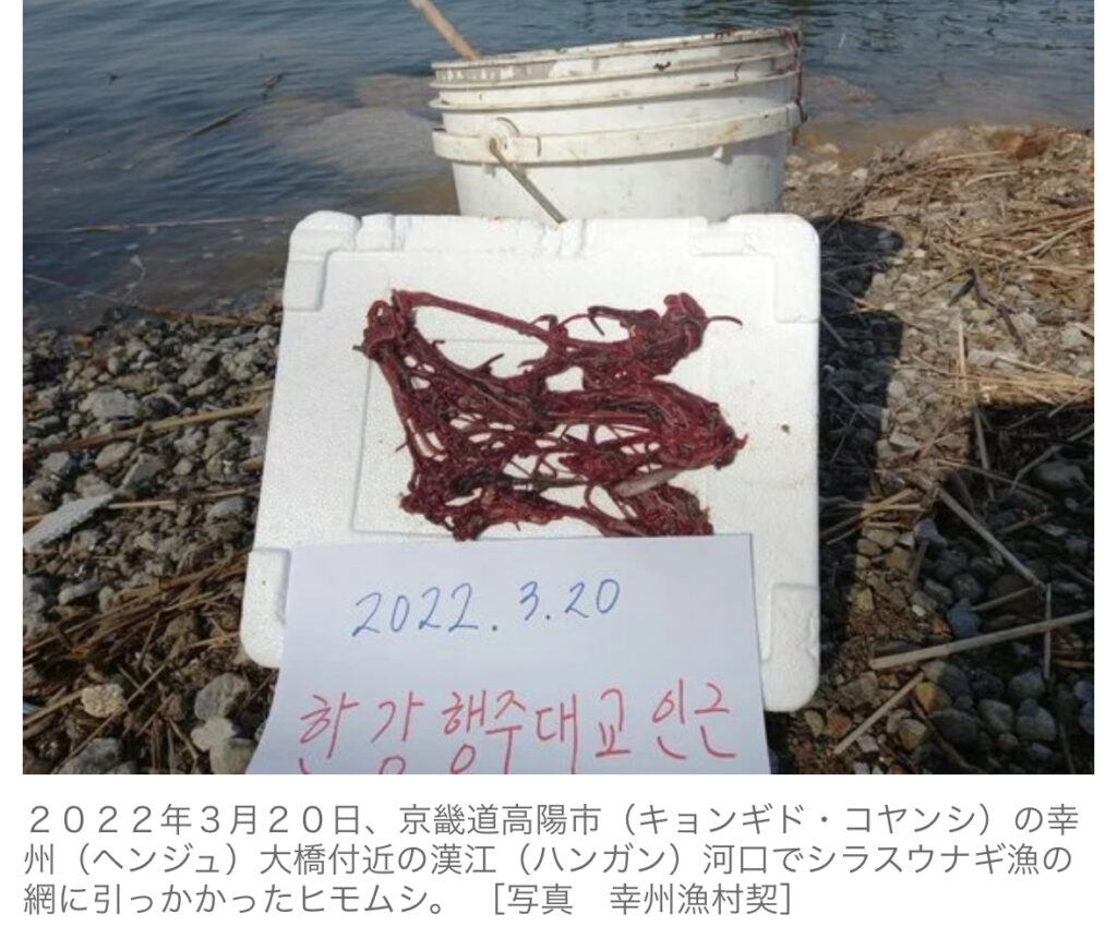 1: 仮面ウニダー ★ 2024/03/28(木) 14:23:55.86 ID:l9Ej+Lx9 中央日報 3/28(木) 10:24配信春を迎えて漢江(ハンガン)河口にシラスウナギの天敵であり寄生生物である「ヒモムシ」が再び大規模に出没し始めて 水中エコシステムが非常事態に陥った。これに...