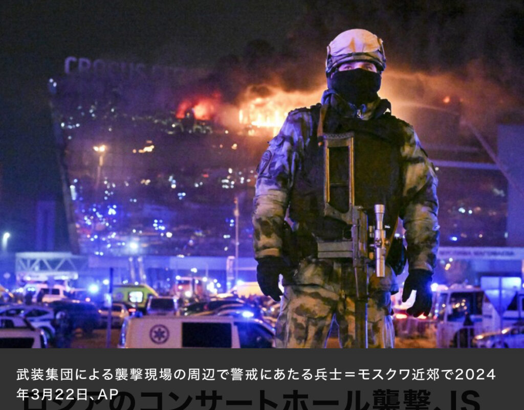 1: 蚤の市 ★ 2024/03/23(土) 09:02:28.00 ID:Mso1S1Xu9 ロシアの首都モスクワ近郊のコンサートホールを武装集団が襲撃した事件で、過激派組織「イスラム国」(IS)が22日深夜、犯行声明を出した。通信アプリ「テレグラム」に投稿された声明は「多くのキ... -
