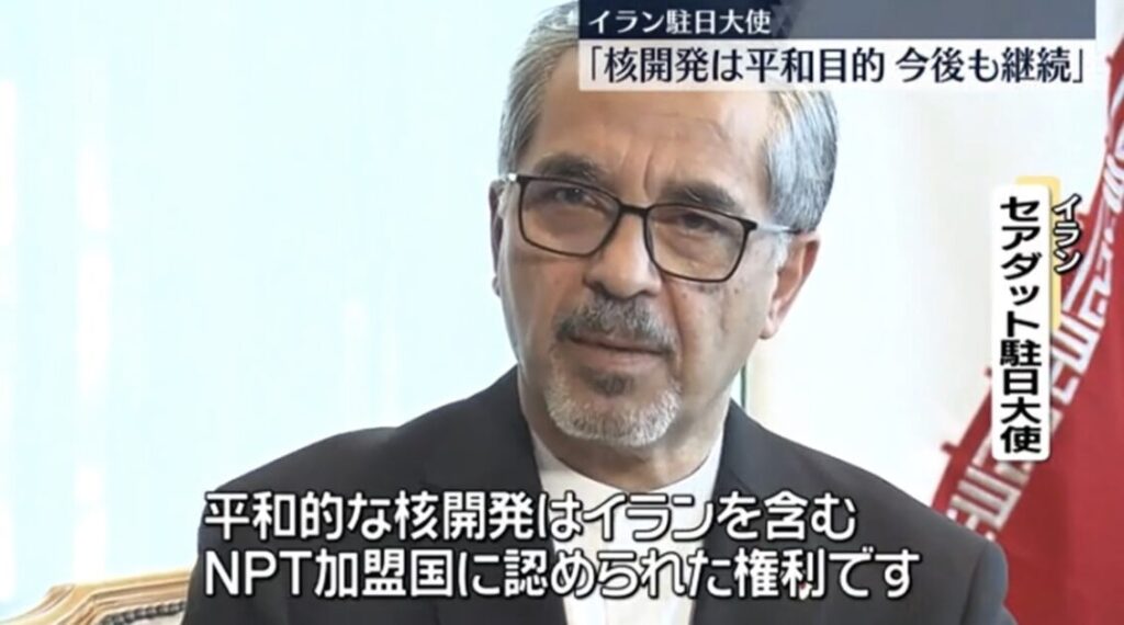 1: お断り ★ 2025/06/19(木) 23:42:10.30 ID:gKgnFra19 イラン駐日大使“核開発は平和目的” 今後も続ける認識示す イランの駐日大使は19日、都内でインタビューに応じ、イランの核開発はあくまで平和目的で、今後も続けていくとの認識を示しました。 イラ... -