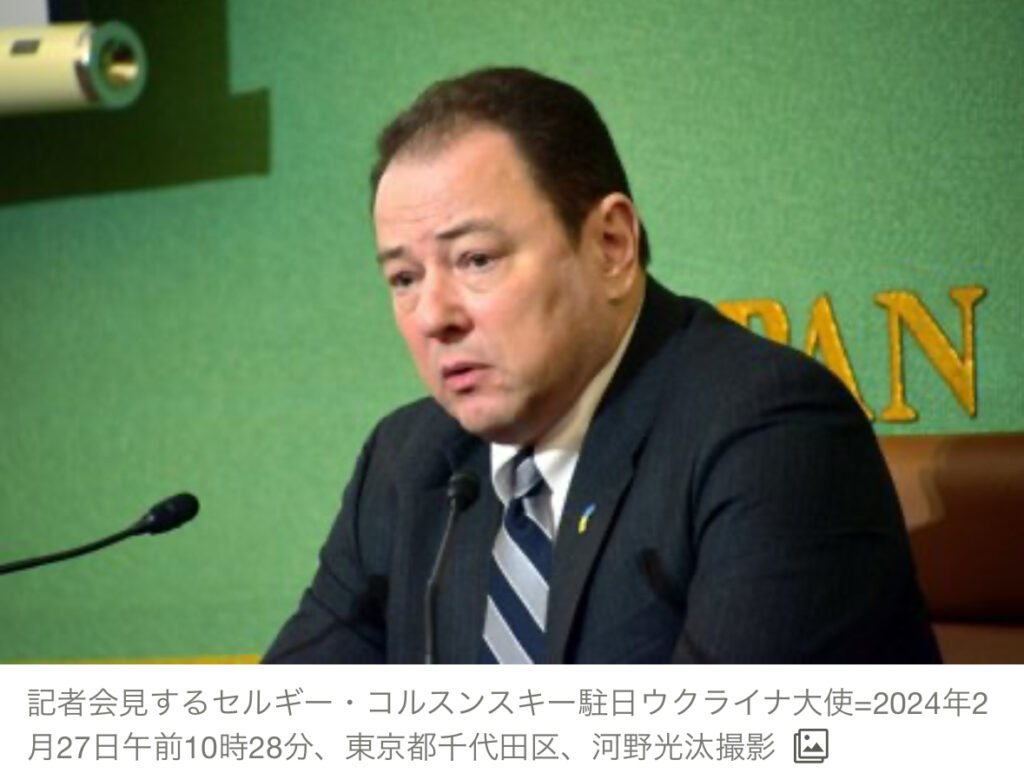 1: おっさん友の会 ★ 2024/02/27(火) 17:05:38.08 ID:546uTtNF9 セルギー・コルスンスキー駐日ウクライナ大使は27日、日本記者クラブ(東京都千代田区)で会見し、侵攻を続けるロシアとの停戦について、領土の返還や戦争被害の賠償などを条件に挙げつつも... -