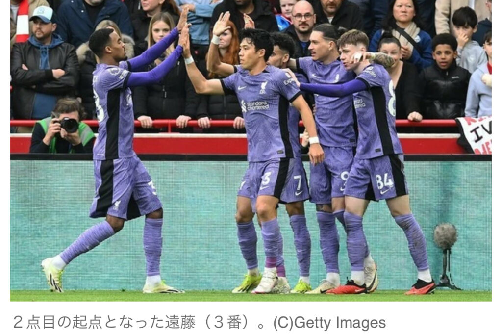 【サッカー】遠藤航が追加点の起点に!首位リバプールは故障者相次ぐもブレントフォードに4発大勝!復帰のサラーが途中出場で1G1A