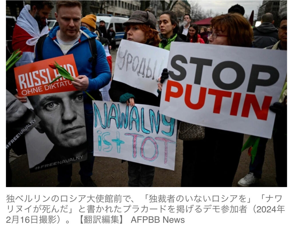 1: 夜のけいちゃん ★ 2024/02/17(土) 19:04:06.25 ID:bYRiZyK49 2/17(土) 17:28配信 AFP=時事 【AFP=時事】ロシアの反体制派指導者アレクセイ・ナワリヌイ(Alexei Navalny)氏(47)が収監先の刑務所で死亡したと発表されたことを受け、ドイツの首都... -