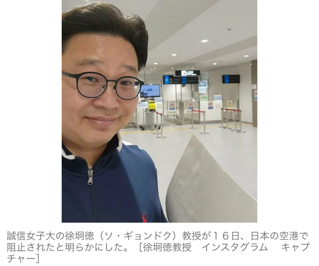 誠信女子大のソ・ギョンドク教授、日本の米子空港で2時間捕まる「下着も隅々まで調べられた」