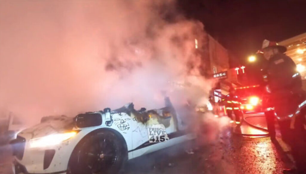 Googleの自動運転車が群衆に止められ窓割られ放火される。住民「自動運転でも車は車カス」米