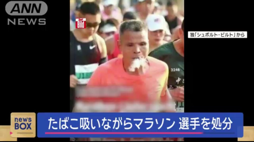 1: 朝一から閉店までφ ★ 2024/01/25(木) 20:24:42.73 ID:n+XgddyV9 [2024/01/24 19:36] Play Video https://news.tv-asahi.co.jp/news_international/articles/000334142.html マラソン大会でたばこを吸いながら走った選手が処分されました。 中国のア... -