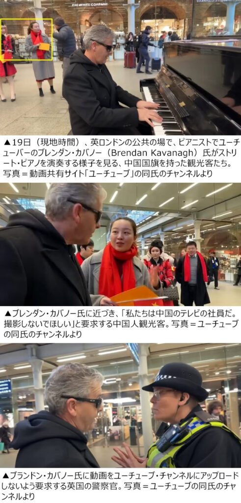 【ロンドン】 ストリートピアノ生配信、聴衆の中国人観光客が「撮るな」と抗議し騒動に
