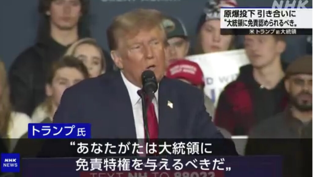 トランプ前大統領「原爆投下は決して良いことだとは言えないが、第2次世界大戦を終わらせた」