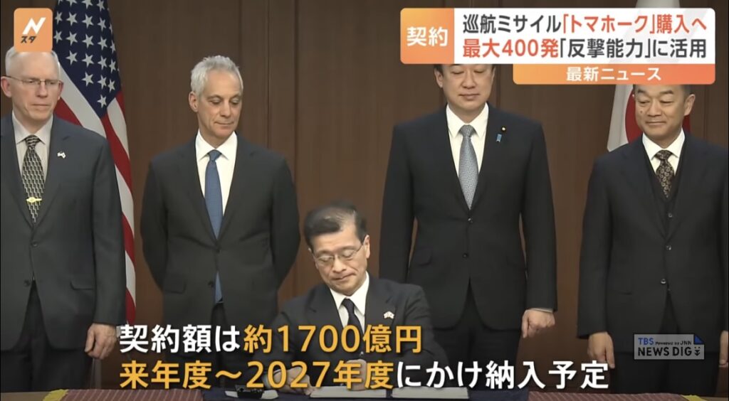 1: チンした水溶き小麦粉 ★ 2024/01/20(土) 23:25:50.75 ID:??? TID:sprout 防衛省 アメリカ製巡航ミサイル「トマホーク」最大400発の購入を正式契約 来年度から順次納入 TBS1月18日 https://newsdig.tbs.co.jp/articles/-/949935防衛省は、反撃能力に活... -