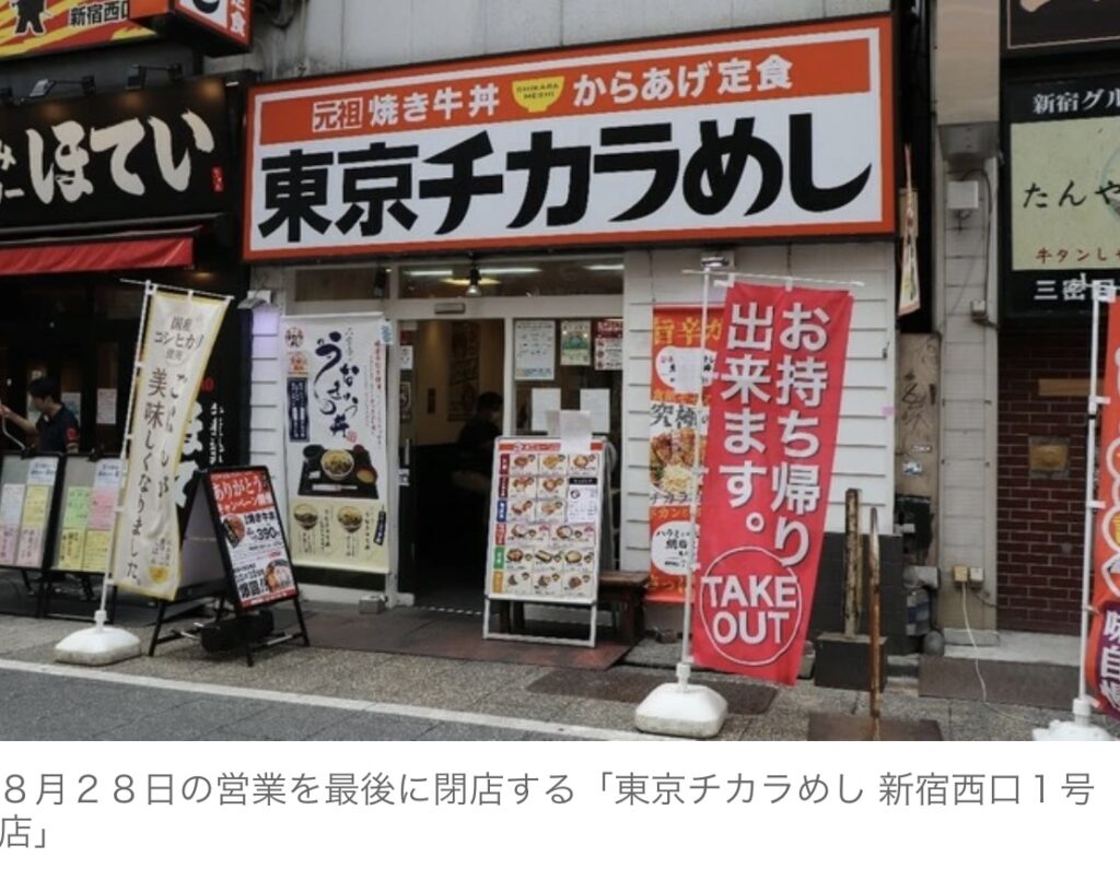 【牛丼チェーン】「東京チカラめし」都内唯一の店舗が閉店へ 国内は鎌ケ谷、大阪の2店舗に 最盛期には国内に132店舗