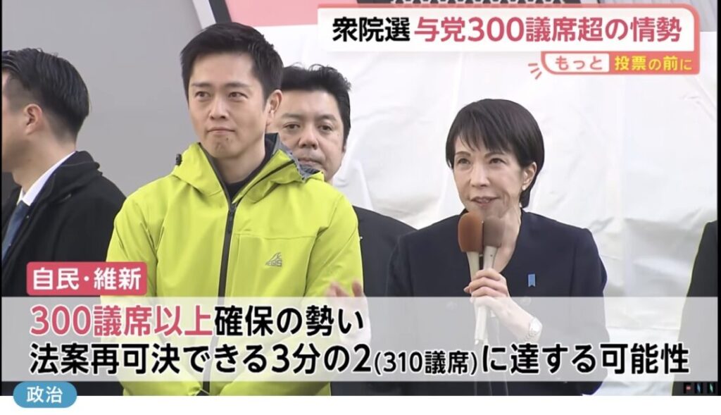 与党300議席超獲得か…自民単独で過半数大きく超える勢い 中道は半減の可能性で参政は10議席前後か【衆院選中盤情勢調査】|FNN