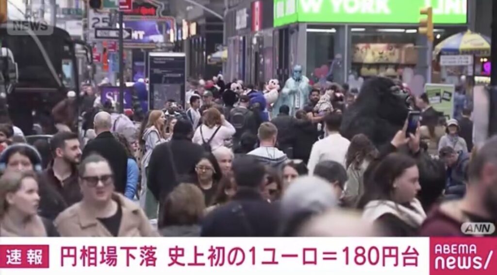 1: ミニミニマン(みょ) [US] 2025/11/18(火) 06:48:37.21 ID:RiL+igsU0 BE:595582602-2BP(5555) sssp://img.5ch.net/ico/anime_shii03.gif 史上初めて一時 1ユーロ=180 円台の大台突破 17日のニューヨーク外国為替市場 https://news.tv-asahi.co.jp/news... -